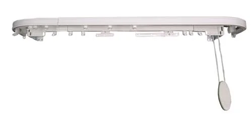 In acciaio verniciato, l’ estensibile con movimento a corda e la mantovana con anelli scorrevoli e velcratura permettono di creare tende con solo mantovana o con mantovana e cadute laterali.